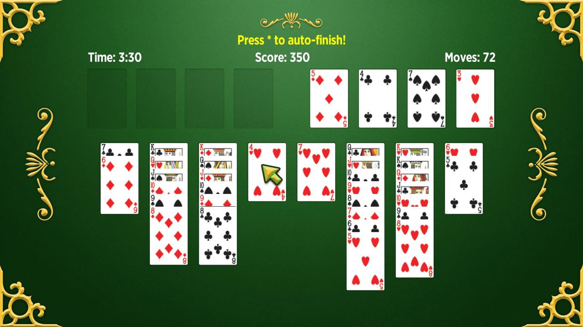 - Once all the piles are in order, a yellow tip will appear telling you to press * to auto-finish, saving you the trouble of finishing it yourself. Your score will be the same as if you finished it yourself.
